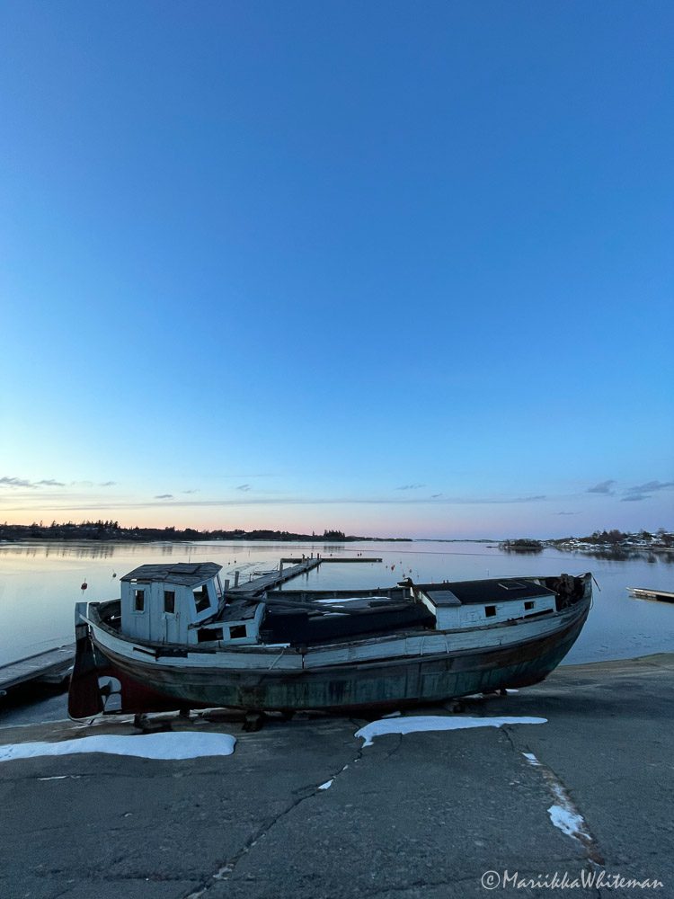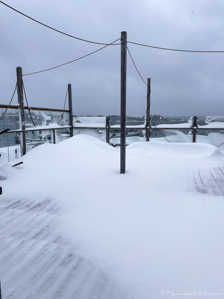 Luonto on yllätyksiä täynnä, mutta tätä en todellakaan osannut odottaa: ensimmäisen päivän aikana satoi melkein parikymmentä senttiä lunta! No mikäpä siinä, lumisade toi mukanaan satumaisen maiseman, luonto oli kuin suoraan postikortista. Kylmyyteen olin joka tapauksessa varautunut. Saariston keväässä on aina kylmä.